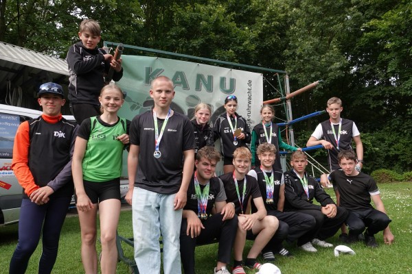 Der Titelsammlung fügte der Vier-Kajak mit Miguel-Leon Heckhoff, Fynn Roth, Finn Glasow und Yannick Glittenberg eine weitere Goldmedaille hinzu. Mit einer halben Bootslänge Vorsprung gewann das DJK Quarett den Wettbewerb über die 500m Kurzstrecke sehr eindeutig und verwies die Konkurrenten aus Hamm und Essen auf die Plätze zwei und drei. Das Duo Miguel Leon Heckhoff und Yannick Glittenberg holte sich zudem in den Wettbewerben der Zweier-Kajaks über 500m Kurz- und 1000m Mittelstrecke unangefochten beide Mannschaftstitel.